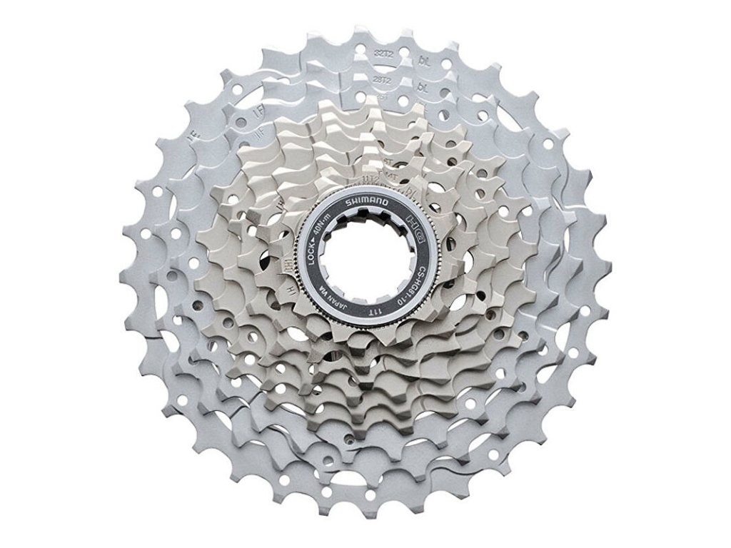 kazetové pastorky HG (10 speed), 3 pastorky na Al unašeči, zdokonalené profily zubů pro řetězy HG-X a měniče typu Shadow