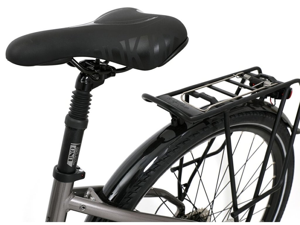 - Plná výbava umocňuje užitné vlastnosti kola. Nosič Atran Velo, blatníky se vzpěrama, robustní stojánek Storm, přední a zadní světlo a zvonek jsou součástí výbavy.