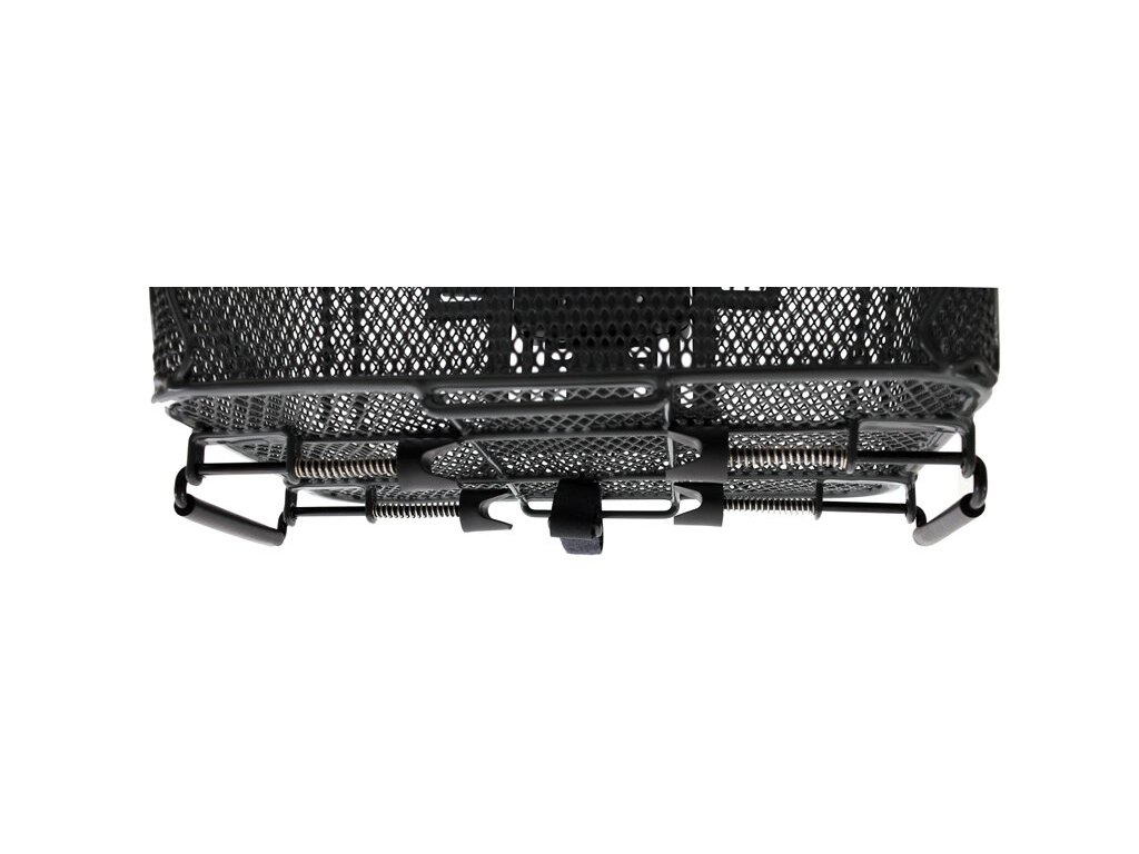 Univerzální drátěný koš na kolo s ochrannou klecí pro montáž na zadní nosič s možností montáže na řidítka.