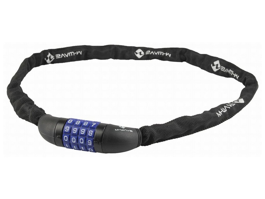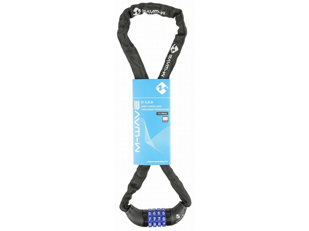 řetězový zámek M-WAVE, délka 900 mm, tl. materiálu řetězu 3,5 mm, stavitelný 4 místný kód, černý