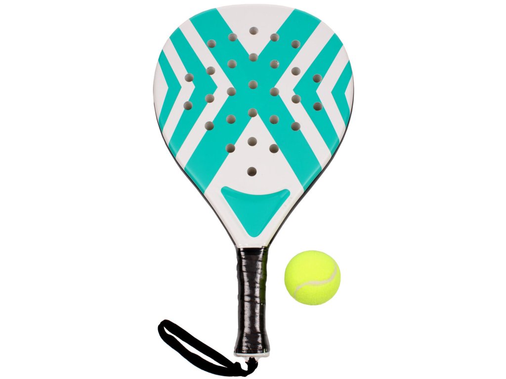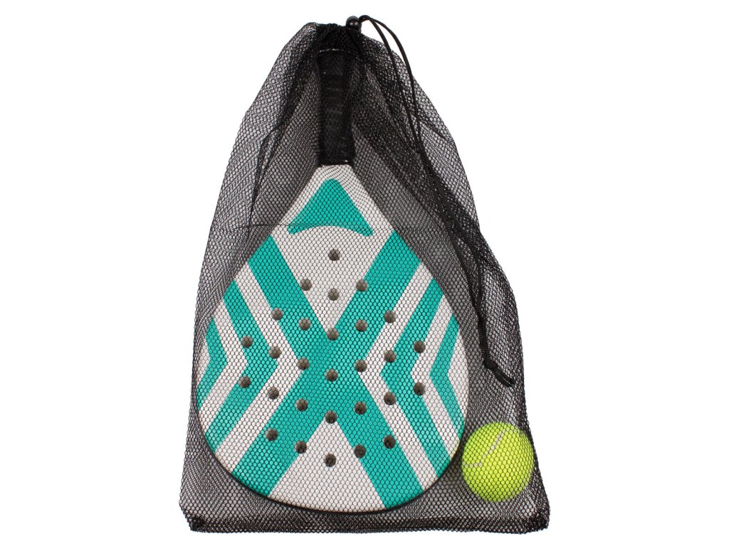 Padelová raketa pro začínající a rekreační hráče. Součástí míček a síťovaný sáček.