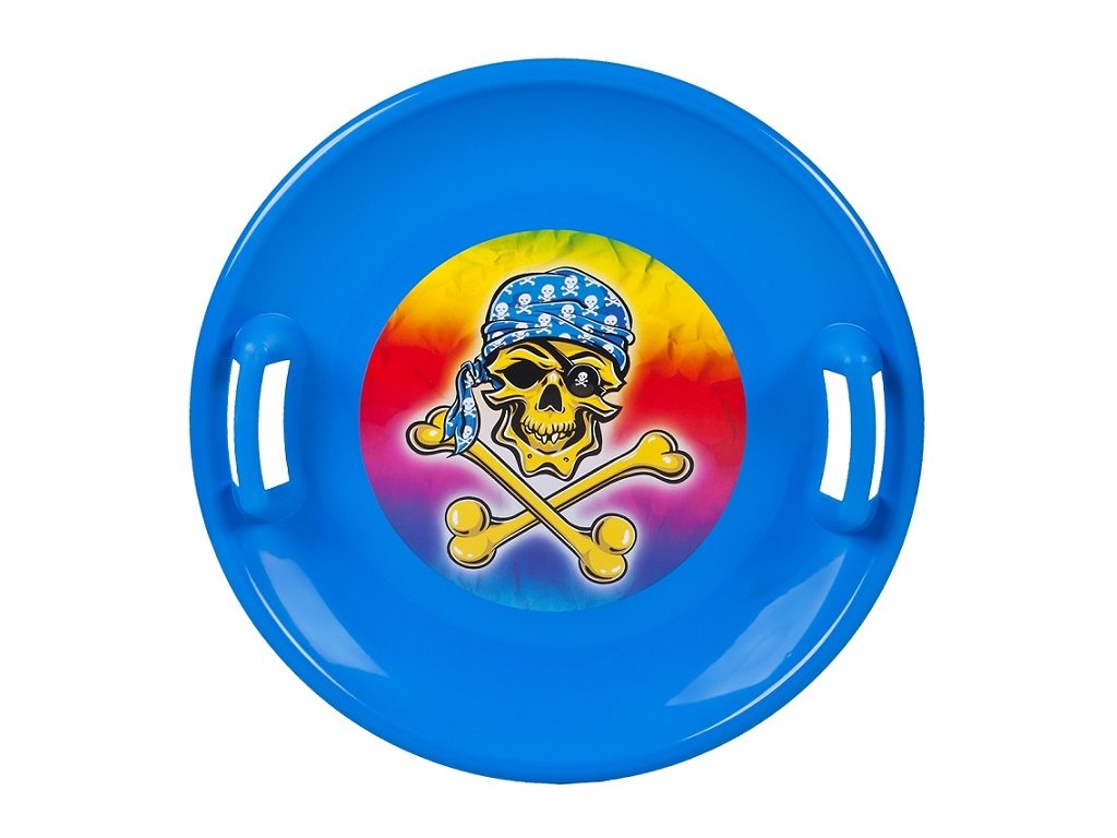 Kulatý kluzák ve tvaru talíře s hravými motivy.