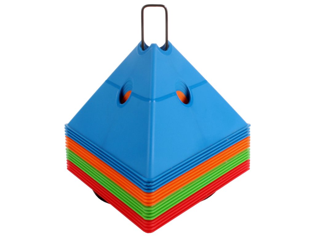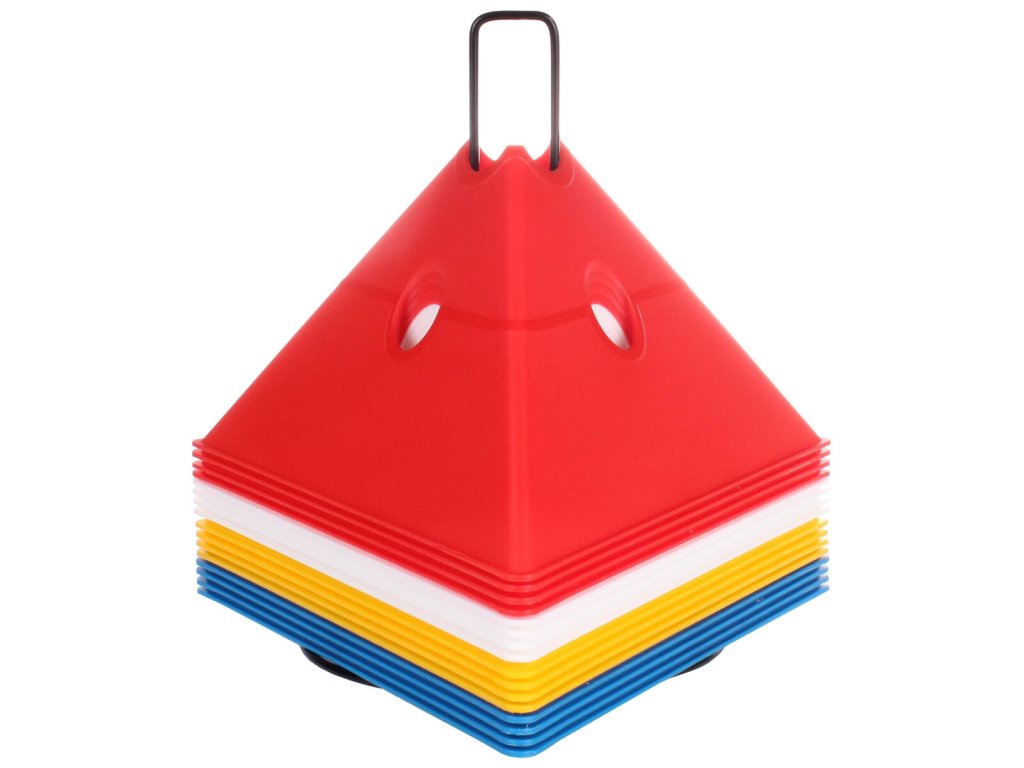 Sada šestnácti vytyčovacích met se stojánkem pro snadné přenášení. Multifunkční vytyčovací mety Merco Tri Corners jsou praktickou pomůckou trenérů různých sportovních odvětví. Mety slouží k vyznačení tréninkové plochy a vytvoření agility překážek ve spojení s plastovými tyčemi s průměrem 25 mm. Plastová meta má výšku 13,5 cm, délku strany 24 cm a hmotnost přibližně 75 g. Úvodní obrázek je pouze ilustrativní a barvy v sadě se mohou lišit. Jednotlivé kombinace nelze vybírat, dodáváme dle aktuálních skladových zásob.