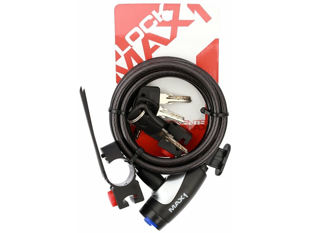 zámek spirála MAX1 1800x8 mm 4 klíče, černý, s diodovým osvětlením